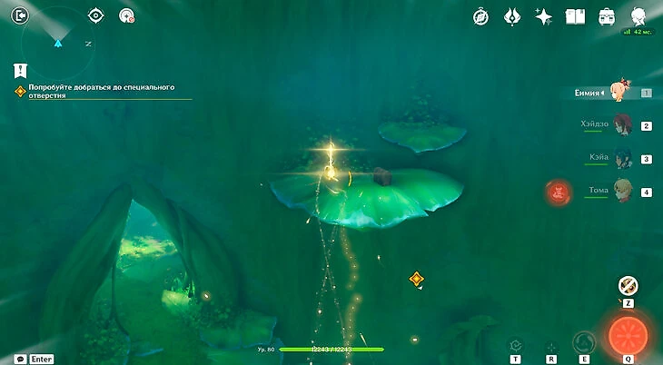 Вернитесь в пещеру, где раньше виделись с Хайпасией. Окажется, что она в обмороке, и ей нужна еда. Но сперва Путешественникам нужно разобраться с таинственным туманом. Он приведет в новый данж. Дойдите до грибочка для прыжков.