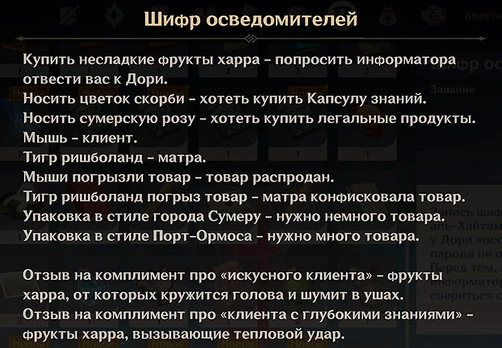 Запомните выданный шифр осведомителей, он пригодится в разговоре.