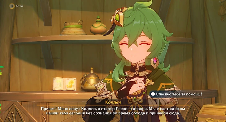 После этого главный герой очнется и познакомится с Коллеи, а потом с ее наставником Тигнари.
