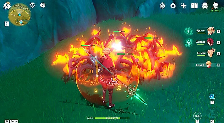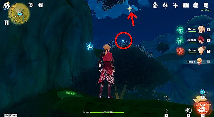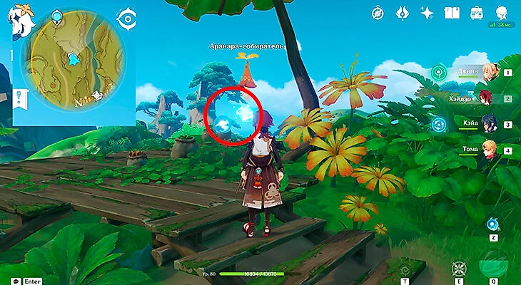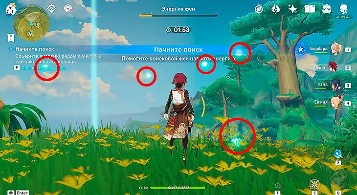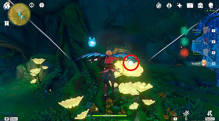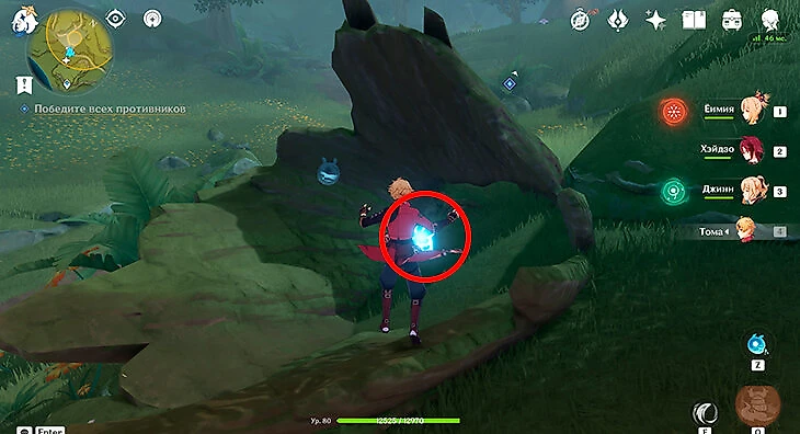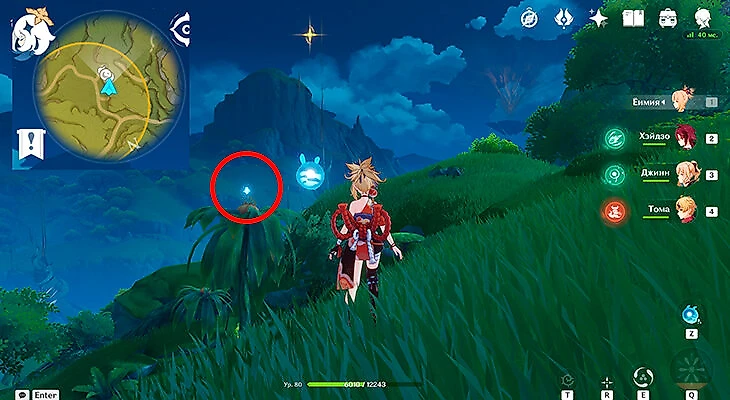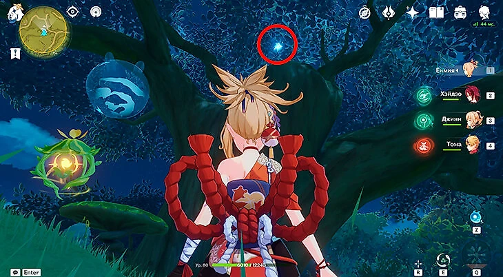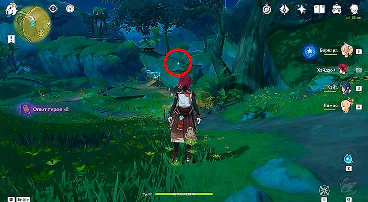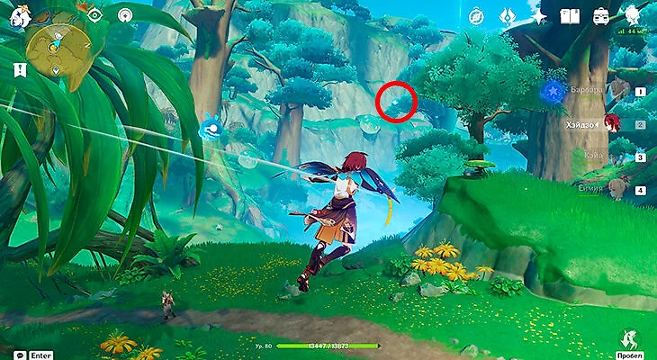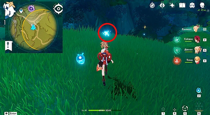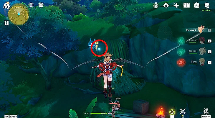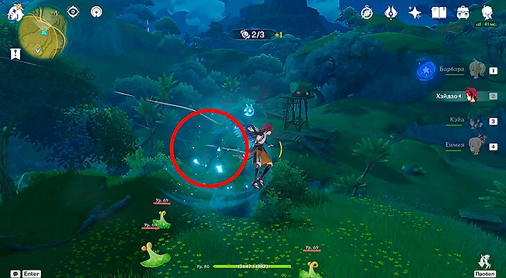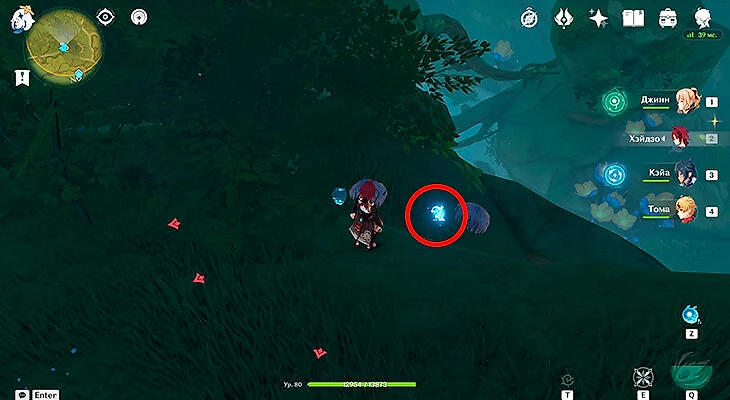 После этого подойдите к значку лопаты, отмеченному на карте, и начинайте испытание. Нужно будет драться с пиро и электро слаймами, а также с плесенниками. За победу над ними дают зеленую энергию, необходимую для заполнения шкалы энергии феи.