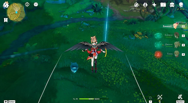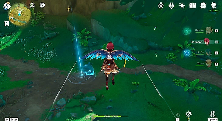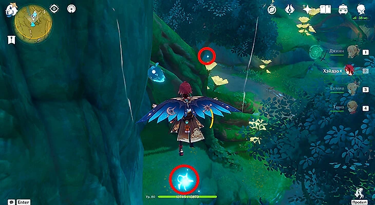 После выполнения второй части вернитесь к грибочку для прыжков и запрыгните в анемо-барьер, чтобы собрать первую часть энергии.