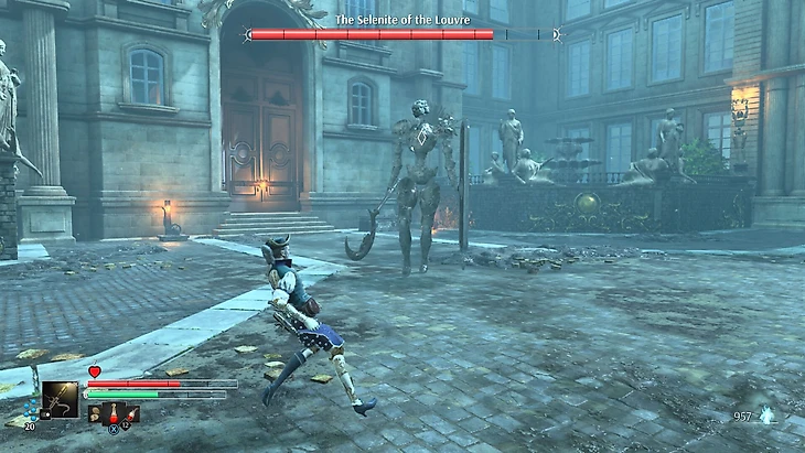 По мере прохождения становится очевидно, что авторы хоть и вдохновлялись Bloodborne, но не пытались скопировать формулу FromSoftware от и до. Правильнее причислять Steelrising к более широкому жанру экшен-RPG. Есть несколько вещей, помимо низкой сложности, которые явно отличают игру от классических соулслайков.