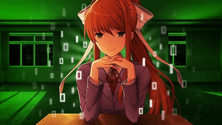 Фишка в том, что литературным клубом заправляет Моника. Дама очаровательна, но разработчик не добавил возможность закрутить с ней роман. Монику это огорчает – в итоге она меняет код игры и жестоко устраняет конкуренток. Все ради того, чтобы вы, игрок за монитором, больше не смогли ее игнорировать.