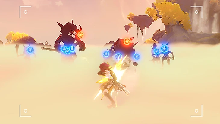 На первом этапе предстоит сразиться с хиличурлами, шамачурлами, митачурлами, пустынниками и роботами. Постарайтесь держать в кадре «главного» в группе соперников – у них есть золотые уязвимости.