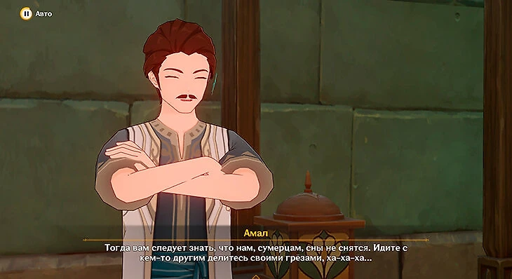 Поговорите с «Дуньярзад». От девушки осталась одна лишь оболочка. Тогда Путешественник расстроится и пойдет смотреть на танец. Он заметит, что с речью Нилу что-то не так, и зацепится за падисары – в реальном мире их нет, но фантазия додумывает во сне несуществующие детали. Так вы поймете, что находитесь во сне Нилу.