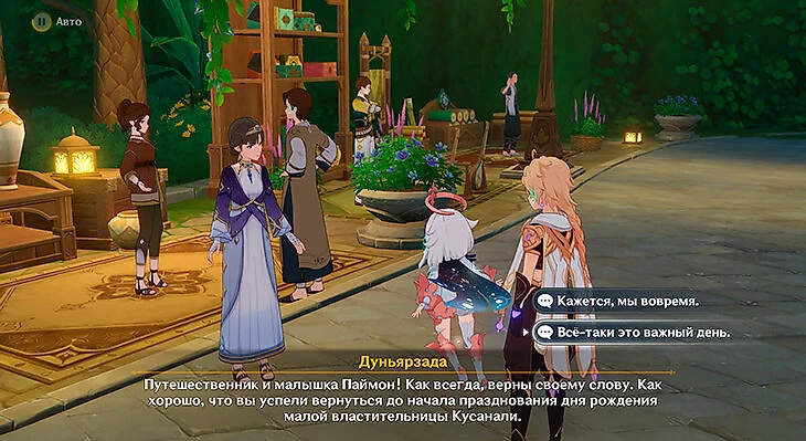 После этого Нахида спросит, кто же она на самом деле – выберите пункт «Луна». Она подтвердит, что на самом деле и есть малая властительница Кусанали.