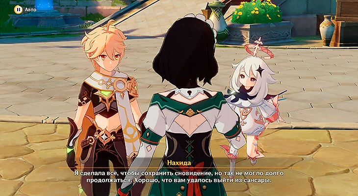 Путешественник захочет покинуть город, чтобы посмотреть, что произойдет. Нахида скажет, что после этой идеи Путешественник никогда не возвращался.