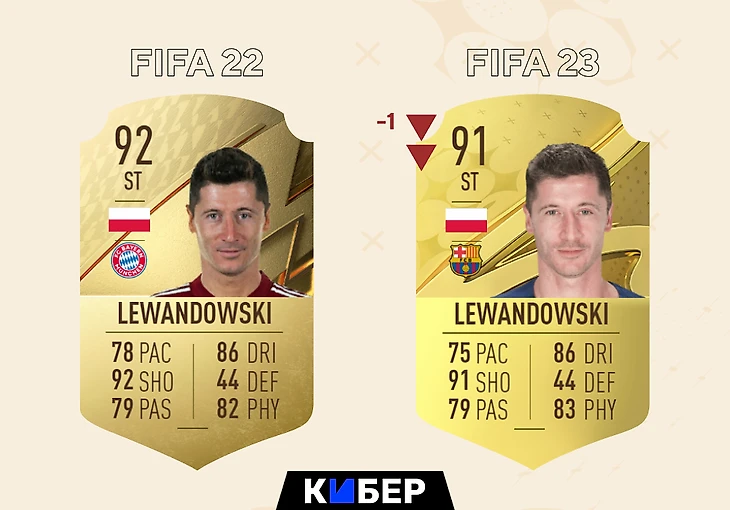 В новой части что-то пошло не так. Пиковому Левандовскому снизили рейтинг и уравняли его с четырьмя другими футболистами – например, титульным Килианом Мбаппе. Кажется, в альтернативной вселенной Левандовски мог спокойно поделить лидерство в рейтинге в паре с будущим обладателем ЗМ Каримом Бензема. Вопросов точно было бы меньше.