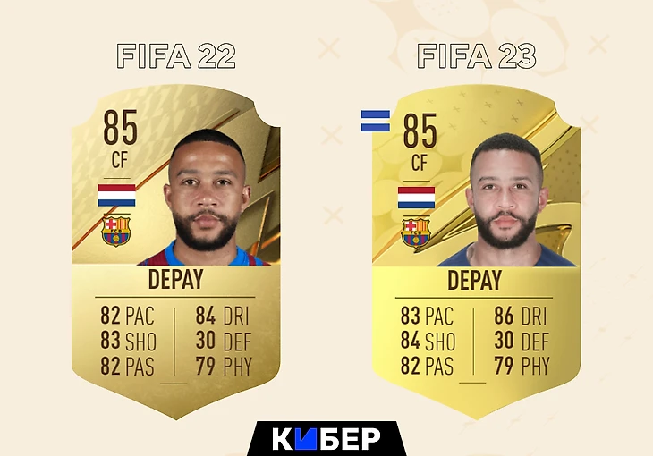 Мемфис Депай провел очень неровный сезон. Он забивал в кризисной «Барселоне», но после прихода Хави и Обамеянга быстро ушел на второй план. Богатая трансферная кампания летом 2022-го перечеркнула будущее нидерландца в клубе. Депай – шестая атакующая опция Хави, но в FIFA 23 он непостижимым образом обогнал всех, кроме Левы.
