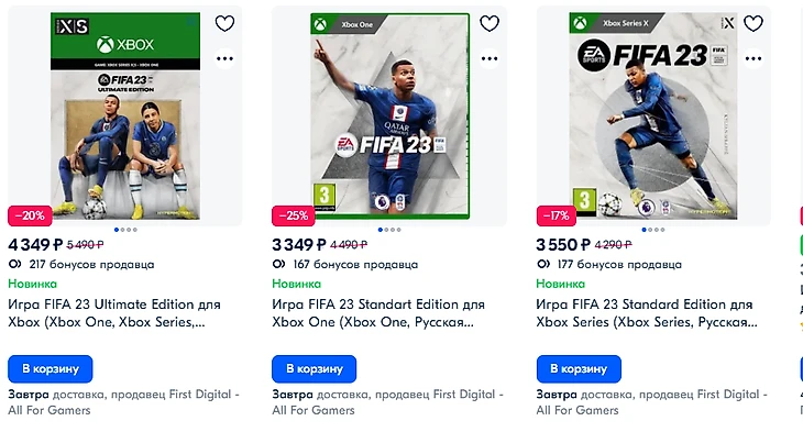 Например, «1С-Интерес» в конце августа собирала предзаказы на физические диски Фифа 23 с такими ценами: