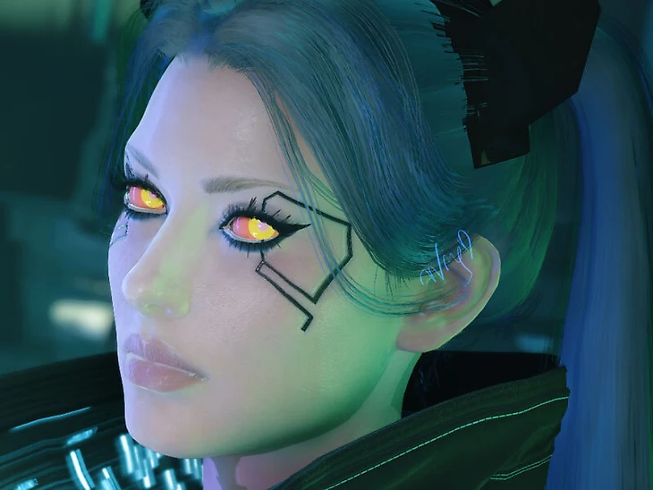 Ребекка носит оверсайз куртку, из-под которой видно белье. У нее красно-желтые глаза с неким кибер-улучшением, вместо сложных причесок Бекка предпочитает два хвостика. Увы, мод на лоли-персонажа еще не подвезли, зато можно установить мод на ее пистолет.
