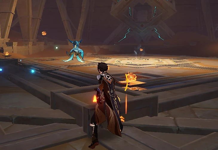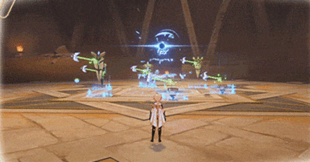 Также у алгоритма есть фаза невидимости. Он становится полупрозрачным и призывает две части механизма. Они легко уничтожаются Электро-ударами и реакциями Электро+Дендро.