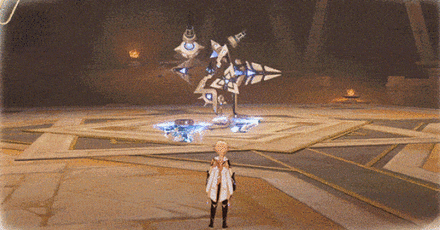 У босса две опасных атаки, требующие внимательности. Первая – направленный лазерный луч с большим количеством урона. Вторая – взрывная волна, которая сбивает персонажей с ног, как у Пиро или Гео гипостазисов. Еще босс ставит купол, внутри которого наносится урон, и прицеливается, чтобы выстрелить, но от этих атак легко уклониться.