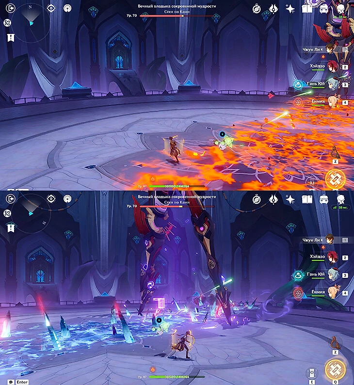 «Грохот падения» – в первой фазе накопите на заряд Акаши и дважды активируйте Электро-подставку, чтобы дважды парализовать босса;