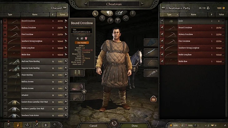 Также можно пользоваться консольными командами, о которых речь пойдет ниже, а пока что держите читы в Mount and Blade 2 Bannerlord: