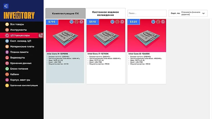 Сразу сортирую по стоимости – сегодня праздник и можно позволить себе не мелочиться. Материнская плата – основа основ любого компьютера. И выбор пал на дорогущую MSI MEG на чипсете Z690. Она поддерживает водяное охлаждение и технологию SLI – больше и знать не надо. Поверх кладем процессор i9-12900K аж с 16 ядрами!