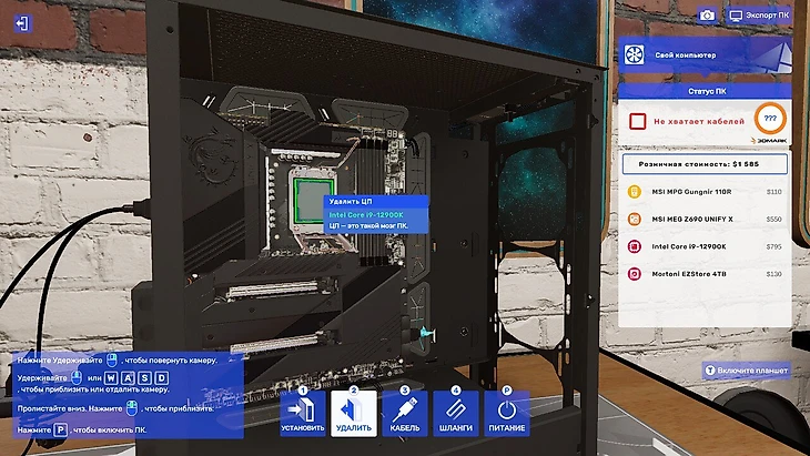 С релизом PC Building Simulator 2 я вспомнил о давнем желании собрать машину мечты – без финансовых ограничений, но с максимальной комплектацией. В игре есть режим песочницы, где доступны сотни комплектующих на любой вкус и кошелек. Туда-то я и отправился.