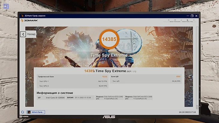 Следом я запустил 3DMark – время тестить производительность! Начал с самого жесткого бенчмарка: Time Spy Extreme, на котором тестят для 4K-гейминга.