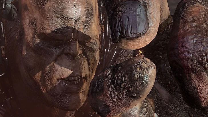 Кратос проявил себя великим воином, но получил ранение, когда ему на голову упал обломок скалы. Герою проломило череп, но Гефест спас его. Кузнец выковал золотые пластины и скрепил ими череп воителя. Кратос выжил, но навсегда остался изуродованным бедолагой.