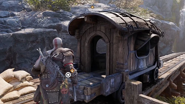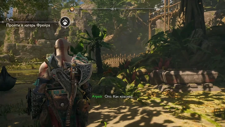 Как только вы доберетесь до баррикады с шипами, бросаем топор Левиафан в крюк посередине и добираемся до Лагеря Фрейра. Говорим с ним и отправляемся в следующий поход.