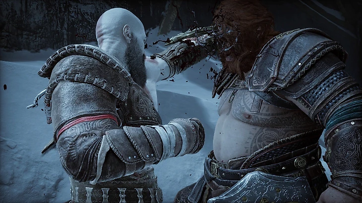 К счастью, учитывая нехватку сил у Атрея, Тор и Ингрид справятся с большей частью этой битвы, так как в зависимости от сложности вам нужно будет только два, а то и три раза сбить Инеистого Древнего, прежде чем Тор нанесет сокрушительный удар ему в грудь своим молотом.