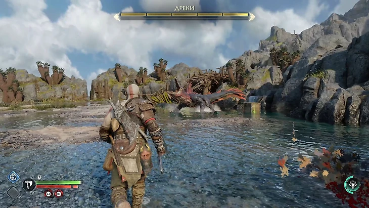 Сфокусируйтесь на индикаторе входящих атак в нижней части экрана имеет решающее значение для выживания во время этого боя, так как в большинстве случаев Дреки в воде не будет в вашей зоне досягаемости.