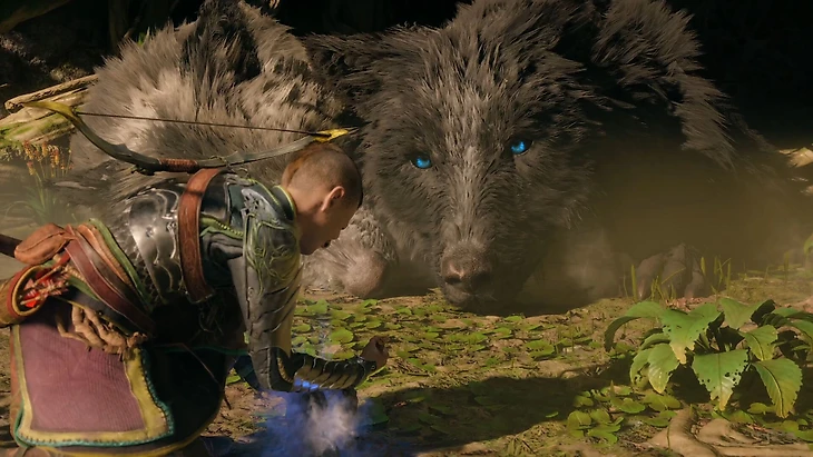 Атрей приходит в себя на какой-то поляне, после чего видит волка. Идем за ним.