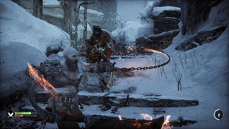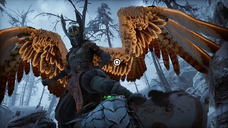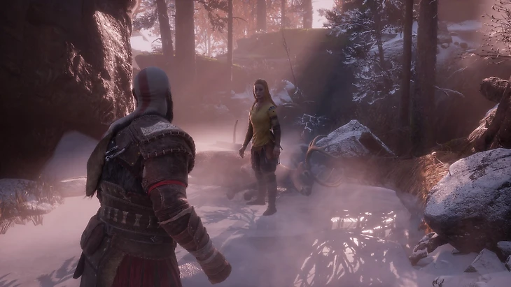 Игра стартует спустя пару лет после событий прошлой части. Возмужавший Атрей возвращается с охоты, грузит добычу на сани и вместе с отцом едет домой. Путь преграждает Фрейя, которая из-за Кратоса лишилась сына. Она атакует сани в облике птицы. Чтобы отбиться, вовремя нажимайте появляющиеся на экране кнопки. QTE простое, проблем не будет.