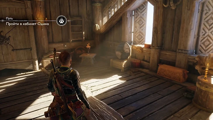 Далее возвращаемся к дому Синдри и смотрим очередную катсцену. За столом Кратос скажет, что следующая цель – Альвхейм, мир эльфов.