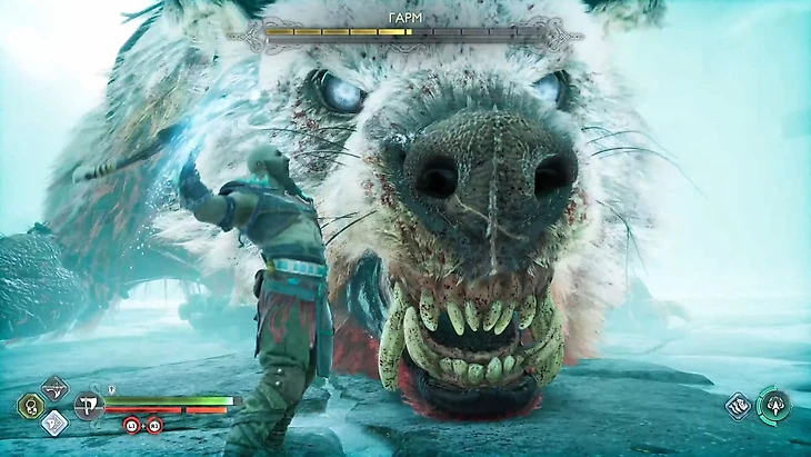 Бой с Охотницей легкий. Самое опасное ее оружие – лук и огненные стрелы, которые взрываются после попадания в землю. Уворачивайтесь от выстрелов и кидайте Левиафан в голову босса, когда на ней загораются рожки. После попадания топором Охотница будет уязвима. Главное, не упустите момент, когда босс вскочит. Кратос в этот раз дерется без щита, так что парировать атаки не удастся.