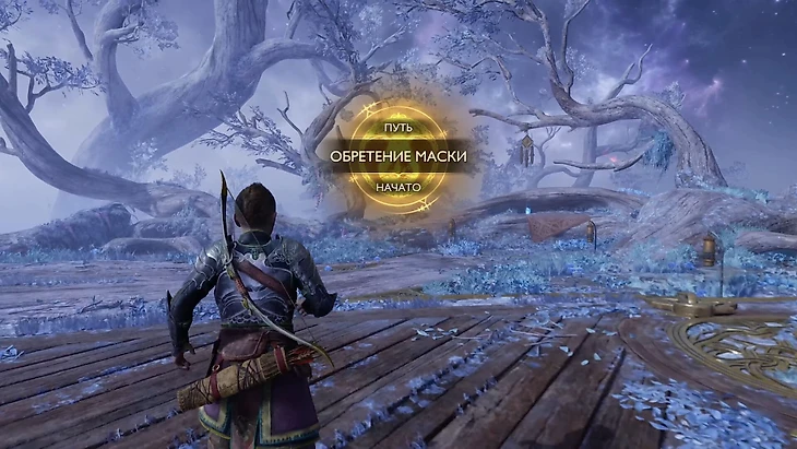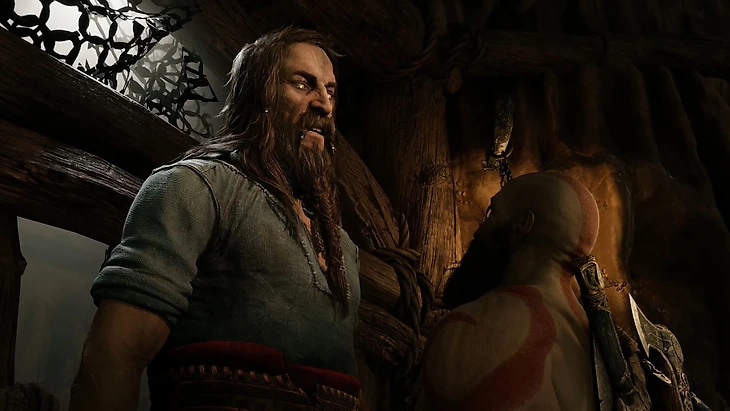 Кратоса разбудит Мимир. Уже поздно, а Атрей не вернулся, так что идем за ним. Покиньте территорию дома через узкий проход рядом с жилищем волков. Путь преграждают хрупкие дощечки, Кратос их сломает.