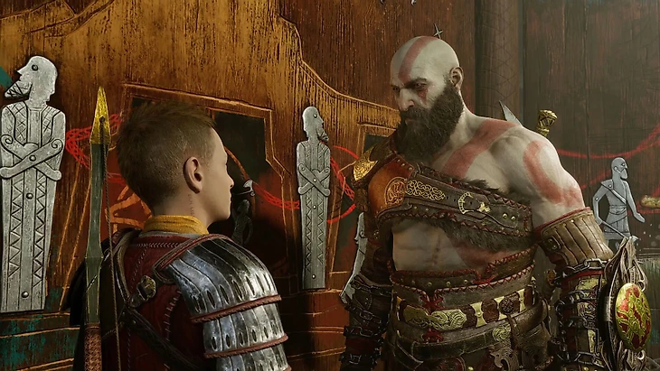 Прибыв в Мидгард, войдите в свою комнату, где вас остановят два особых гостя, Фенрир и Ангрбода. После ролика Атрей попрощается с ними, прежде чем встретиться с Хугинном внутри.