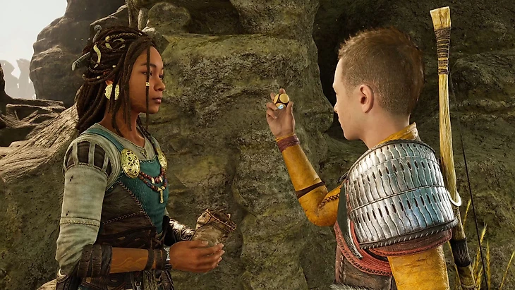 Прежде чем вы сможете отпустить кнопку, Кратос остановит Атрея, сообщив ему, что они не могут избежать своих проблем, и убедит его найти Синдри.