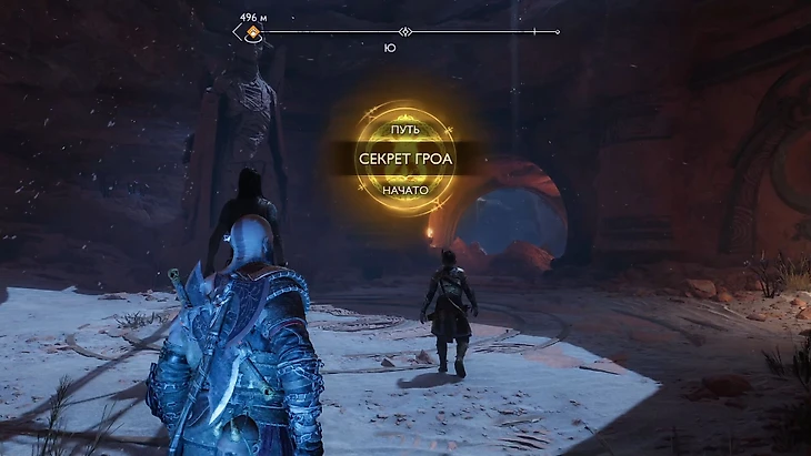 Во время прохождения квеста у вас не будет компаса – он находится у Кратоса. Здесь же все просто – бежим за Ангрбодой. По пути вы найдете сундуки, разобьете несколько камней звуковыми стрелами и сразитесь с монстрами – ничего особо интересного, на чем можно заострить внимание, здесь нет.