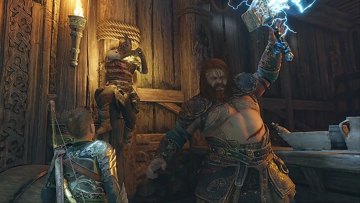 Кратос отказывает Одину и дерется с Тором. Помахав молотом, бог грома улетает. Он хотел не убить, а разозлить Кратоса.