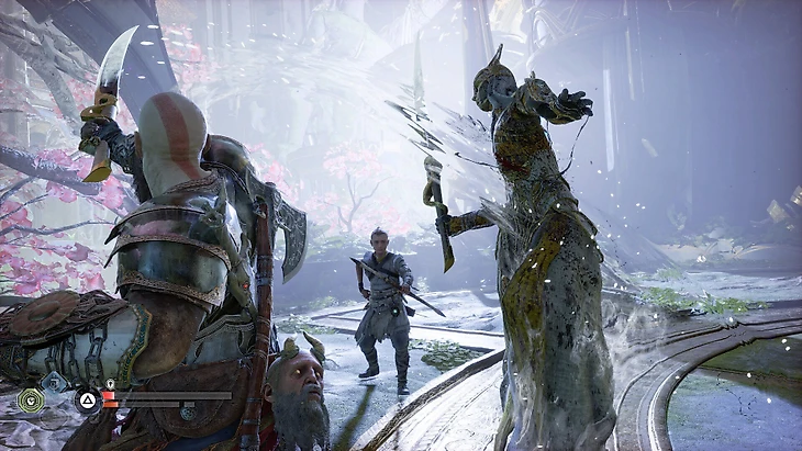 К тому же авторы подталкивают к экспериментам. Чем чаще Кратос пользуется приемами, тем опаснее они остановятся. После тренировок бросок топора сильнее ранит или оглушит врага. Каждый навык полезно прокачать, поэтому пользуешься всем. А еще оружие нужно менять: если поджечь монстра Клинками Хаоса, а затем рубануть топором, нанесете повышенный урон.