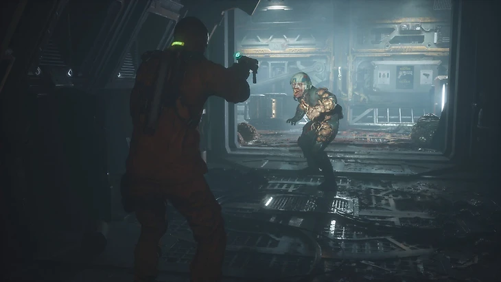 Дело в визуале. Половину игры Джейкоб ходит по обычным коридорам, где каждый сантиметр проработан до мелочей. Кровь на стенах, обезображенные трупы, моргающие лампочки. Еще и люки почти в каждой стене и на полу: монстры выпрыгнут из них в любой момент.