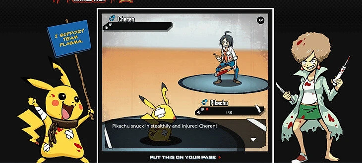 Полноценный, хоть и не слишком масштабный файтинг c почти убитыми, замученными зверюшками. Вместо сражения с другими покемонами мы боремся с собственными тренерами, которые держат покемонов в клетках и покеболах. А еще с врачами, которые ставят эксперименты на животных.