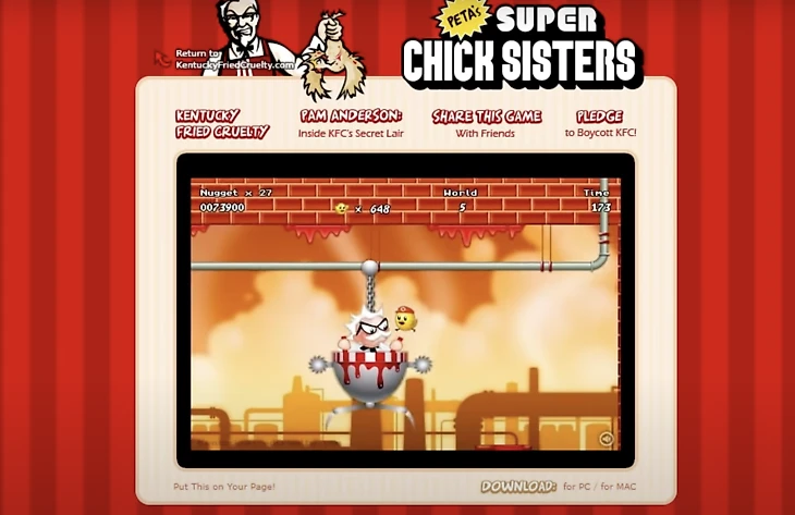 Зоозащитники пилят кровавые игры. В них нужно разбивать кровоточащие яйца и спасать Памелу Андерсон от Полковника Сандерса
