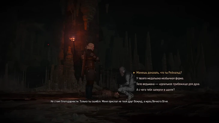 Ситуацию усугубил бунт зараженных – после него церковники заперли несчастных и ушли. Неудивительно, что случайно оказавшийся в шахте Рейнальд мечтал о мести. Только если вникнуть в его историю и отыскать нужные слова, покойный ведьмак простит жрецов и упокоится.