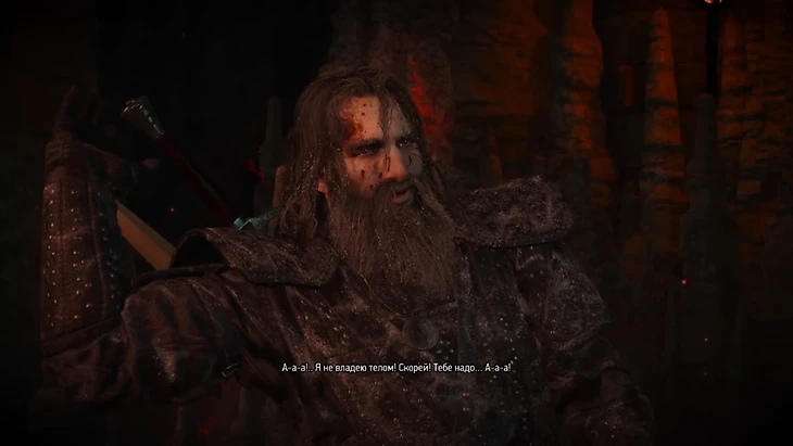 В конце Геральт доберется до зала и выпустит из западни человека. Это ведьмак Рейнальд, которым овладел Красный Мор. Одержимый бросается на Геральта, чтобы вселиться в его могучее тело.