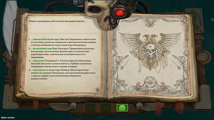 Warhammer 40,000: Rogue Trader на стадии альфы, поэтому навороченного редактора персонажей пока нет. Я создал девушку, которая решает проблемы дипломатией и разбирается в культуре Империума.