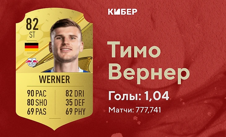 Тимо Вернер вернулся в Бундеслигу, но остался популярным игроком в FUT. Его незамысловатая карточка бегунка легко усиливается «Бомбардиром», а 4 ⭐ слабой ноги сделали ее стабильнее конкурентов. Кроме того, в «Лейпциге» у немца появились фантастические партнеры-линки: Клостерманн, Гвардиол и Лаймер.