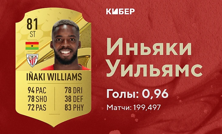 Иньяки Уильямс сменил футбольное гражданство для участия на ЧМ-2022 за Гану и не получил апгрейд удара с левой, поэтому интерес к нему снизился. Секрет Уильямса не изменился – спринт 94 творит магию на поле.