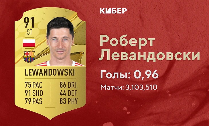 Роберт Левандовски – единственный топ-форвард в нашей подборке. За Холанда (0,89), Роналду (0,82) и Мбаппе (0,76) сыграли десятки миллионов матчей, но огромный интерес фанатов смазал их статистику. Левандовского выбирают более опытные игроки. 0,96 за три миллиона матчей – невероятный показатель для карточки с невысокой скоростью (75). Роберт в большом порядке!
