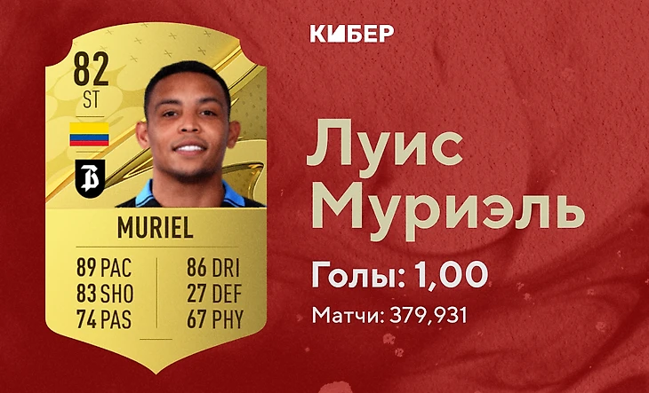 В топе оказалось лишь трое нападающих с показателями больше гола за игру. Третье место занял единственный нападающий из Серии A – Луис Муриэль. Колумбийский форвард давно выручает новичков Ultimate Team. Он быстрый, хорошо завершает из любых позиций и финтит, но играет только в итальянской лиге.