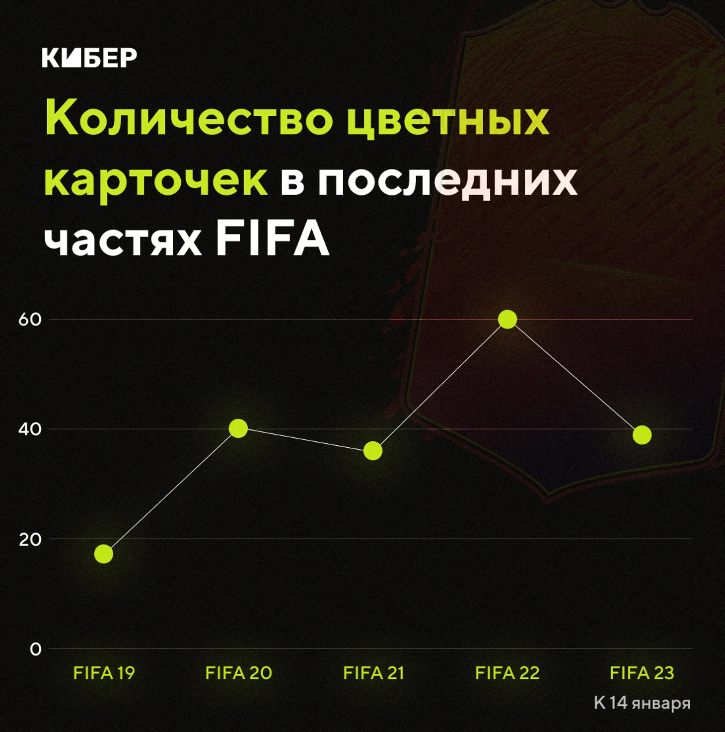 Статистика подтвердила ощущения игроков – количество специальных карточек кратно выросло. FUT 19 – последняя часть онлайн-режима со вдумчивыми ивентами. В FIFA 20 карточки уже выходили раз в две недели (40 типов), а с 2021-го EA выпускала события каждые семь дней (60 штук). FIFA 23 в январе прошла годовой цикл футсима четырехлетней давности! Большое количество карточек спровоцировало рост ИПК и бесконечных заданий. Неудивительно, что их ценность усилений значительно упала.