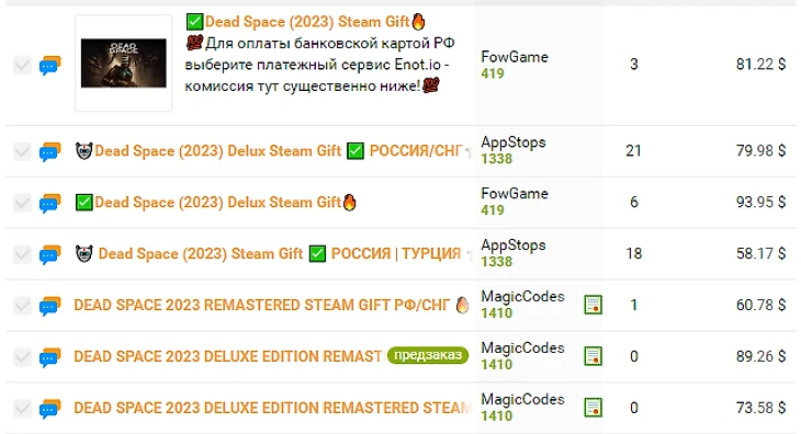 Стоимость игры у реселлеров на маркетплейсе Plati колеблется от 60 до 110 долларов за делюкс-издание (4 200 — 7 600 руб.). При выборе продавца ключа обязательно смотрите не только на отзывы, но и на условия получения ключа. Какие-то ключи продаются для Стима, какие-то для Ориджина.