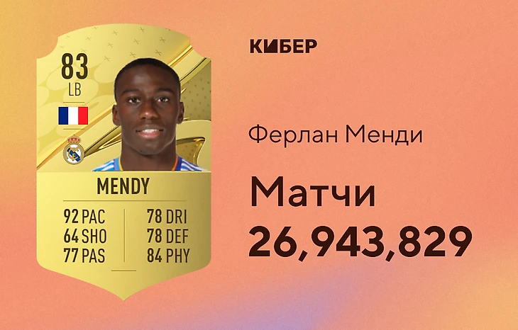 Прогресс Ферлана Менди в «Реале» замедлился, но его популярность в FIFA не потускнела. Француз – счастливый обладатель прекрасной скорости (92) и физики (84), которые очень ценятся фиферами. Из-за простых линков карточка Менди незаменима для новичков.