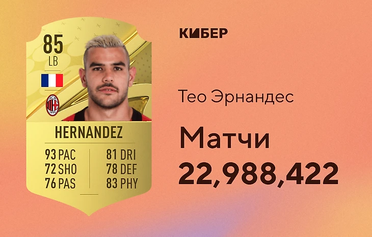 Итальянская Серия A непопулярна, но Тео Эрнандес сохранил место в топ-10. Левый защитник «Милана» радует высокой скоростью (93), ростом (184 см) и крепким телосложением (83), поэтому фиферы находят других французов для сыгранности. Слабые защитные навыки настоящего Тео в FIFA почти незаметны.